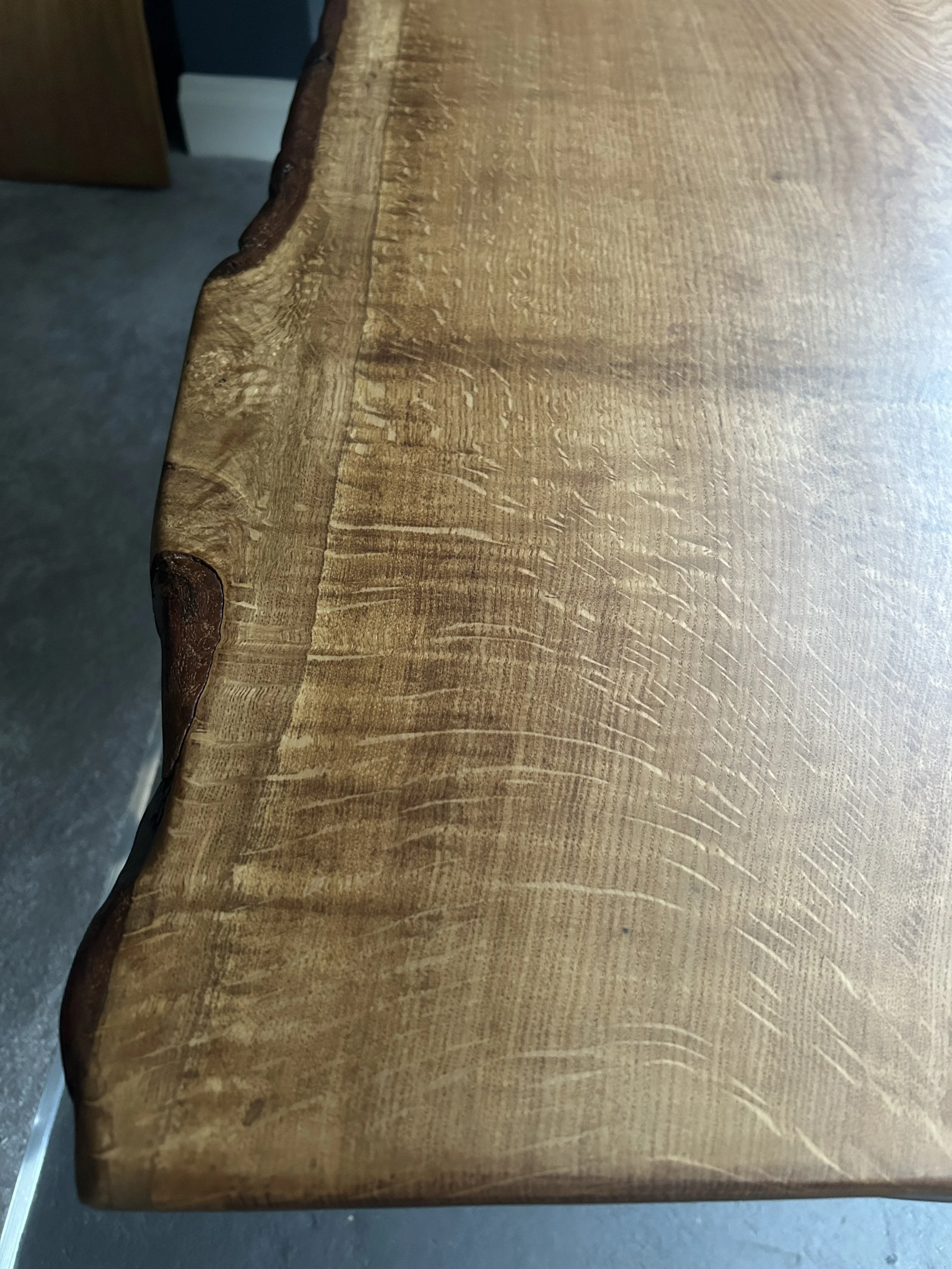 I love the waney edge / live edge style, trying to keep the wood as natural as possible, a unique look that pays tribute to how the wood lived as a tree.